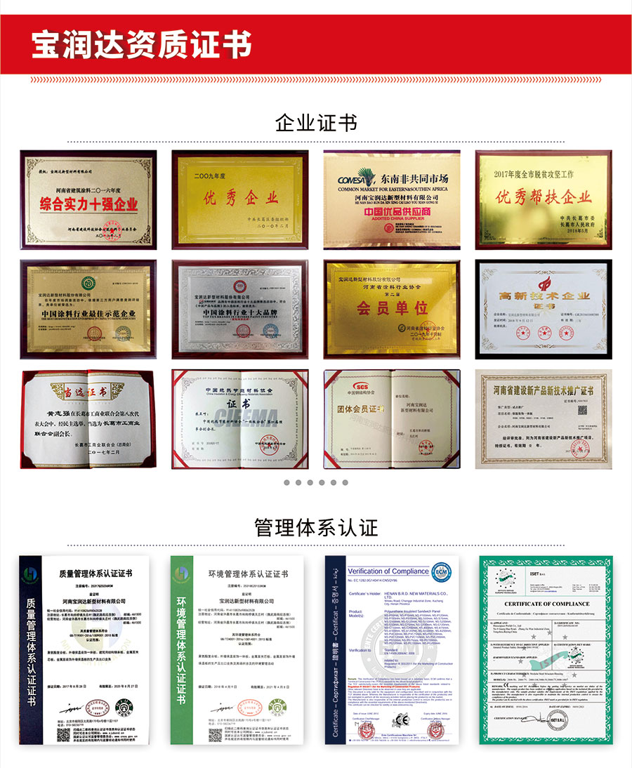 寶潤達一體板飾面層采用真石漆,多彩漆,水包水,水包砂,乳膠漆,實色/金屬氟碳超3000種顏色定制,可根據石材定做樣品